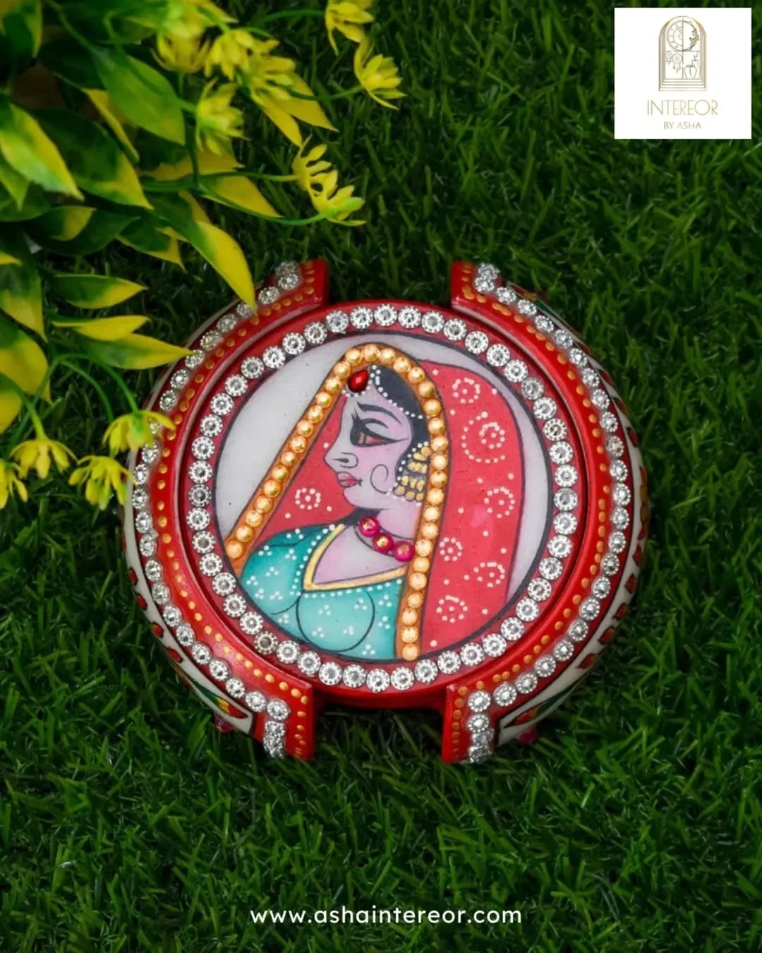 9 cm/ 3.5 inches/ 90 mm Round Marble with Beautiful Rajasthani print