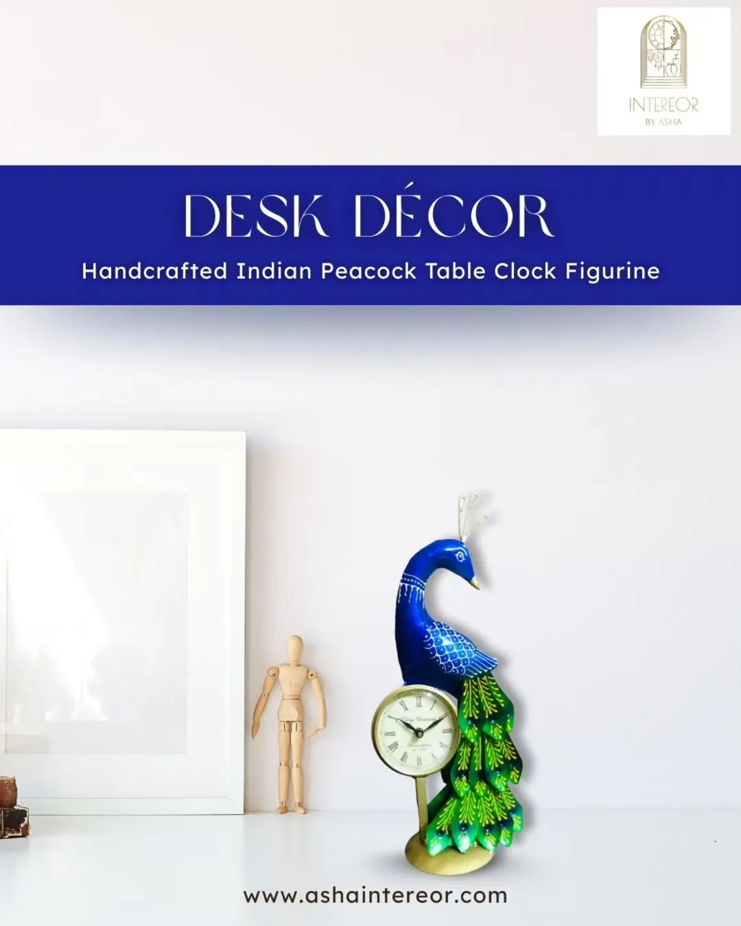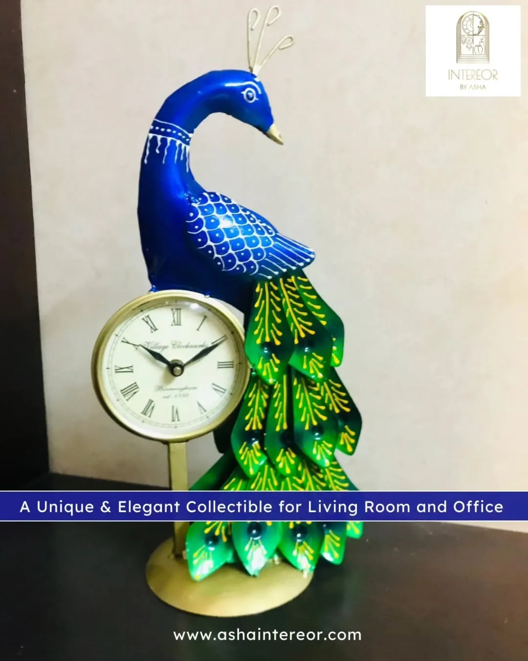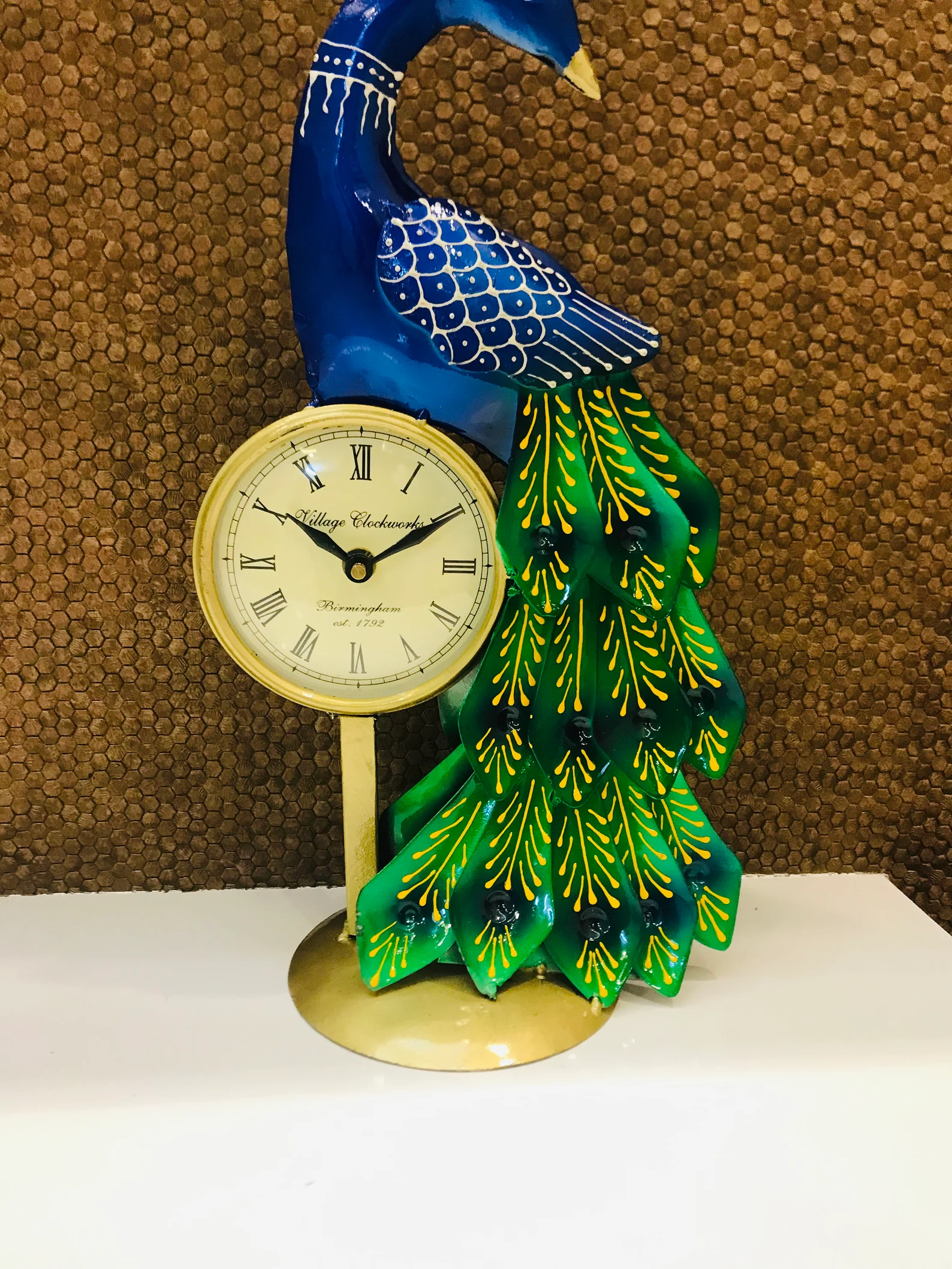 Handcrafted Indian Peacock Table Clock Figurine A Unique Elegant Table Decor and Collectible for Living Room and Office – Perfect Gift Idea