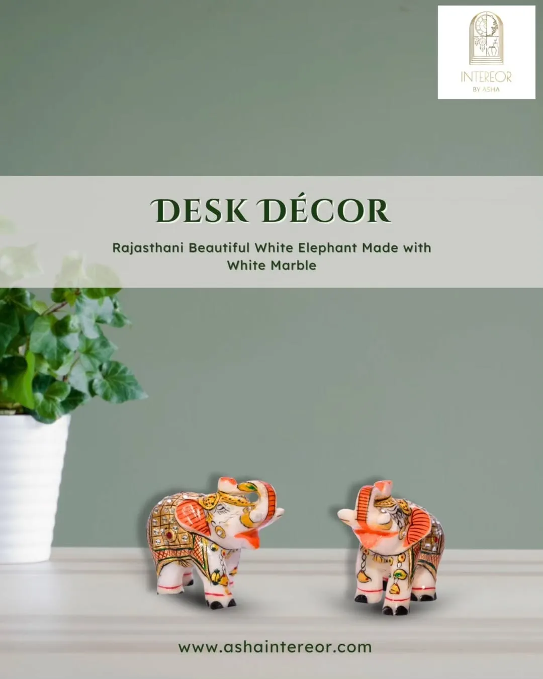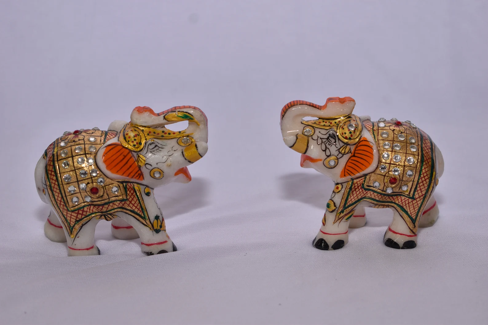 This is White Elephant Marble & craft for gifts and decore is designed by artisans from the villages of Rajasthan (India). Our craftspeople have given this Elephant sculpture a Rajasthani Traditional look. You can use it for home decor, for table decor, for Christmas decor. We hope this Marble sculpture will make your home decorative and shining.