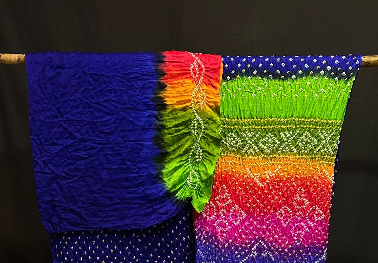 Pure Gaji Silk Tissue Pallu Multi Color Dyeing Chandrokhani Design Bandhani Dupatta